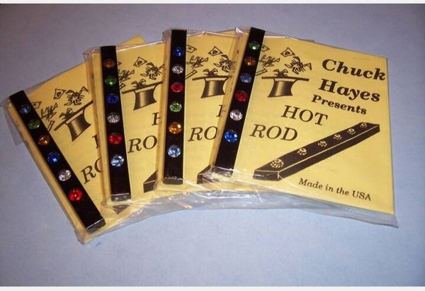 Effect: A Black Acrylic rod with 6 different color gemstones on top and bottom. Spectator is asked to say any number. Magician goes to that selected number and has the spectator remember the color at that spot. Now magician counts to that number flicking his wrist with each number. When the selected number is reached the gemstones are now all the same color which match the selected color on the top and on the bottom. Now the magician does one more flick and the rod now has 6 different color gemstones on one side and all the same color gemstones on the other side. Rod is now handed out for inspection and may be examined as long as they like..